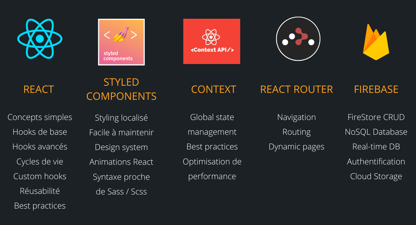 Foncez les yeux fermĂ©s, vous ne trouverez jamais de formation aussi complĂšte en ReactJS, Git et processus dâentreprise."